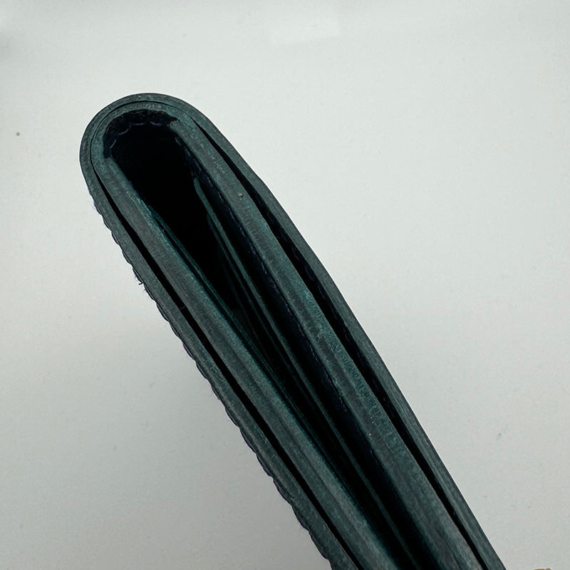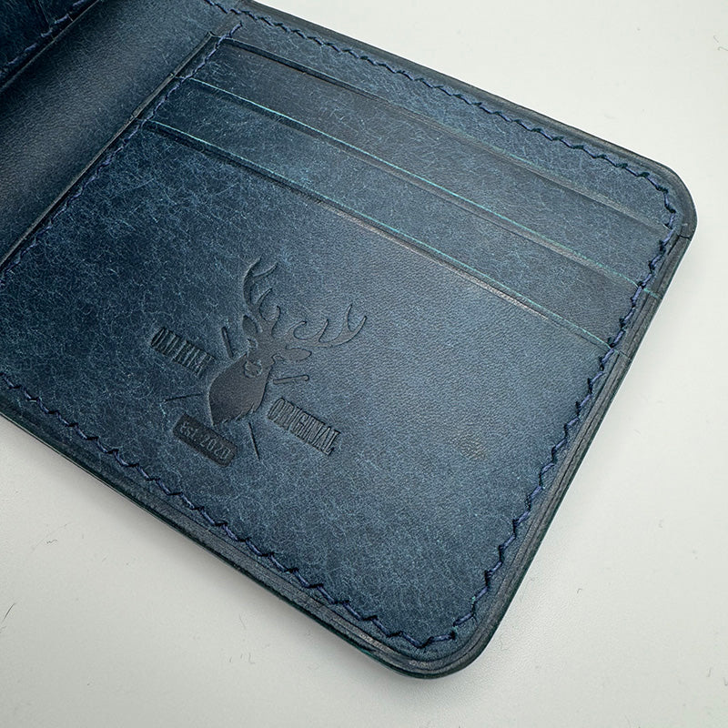 The outer is Navy Gaucho Oil from the Conceria La Bretagna tannery in Italy, the inner is a complementary Navy Pueblo from the Baldassi Carlo Tannery. Stitched in Navy Amy Roke thread.