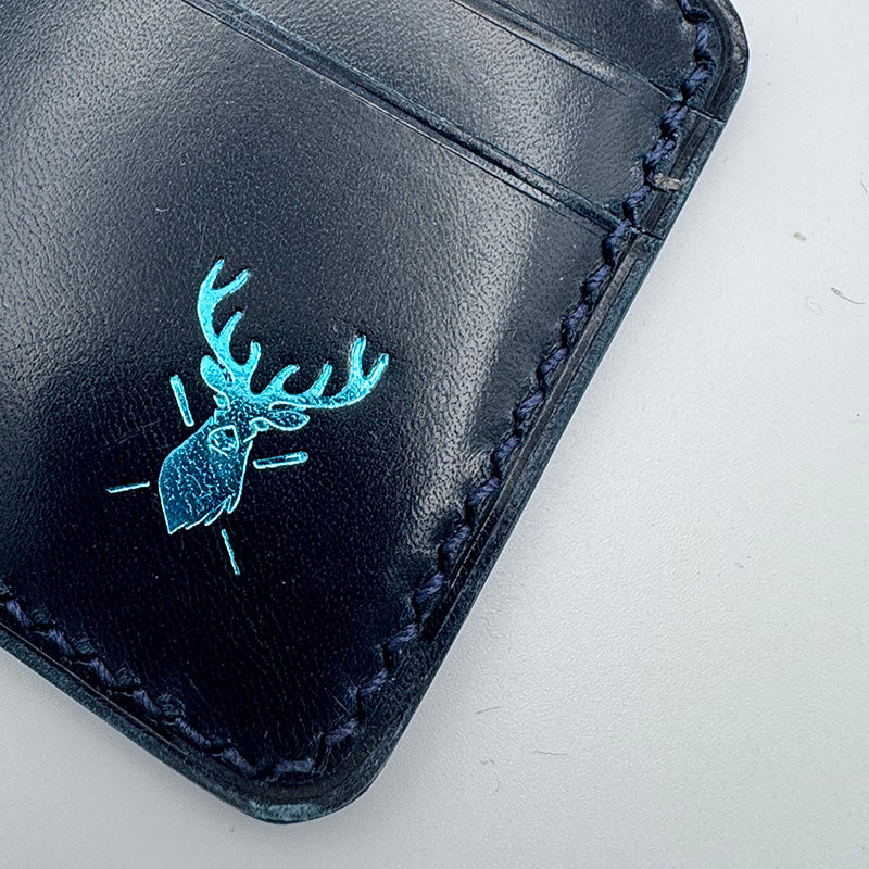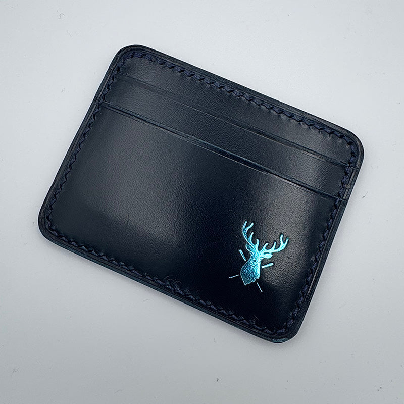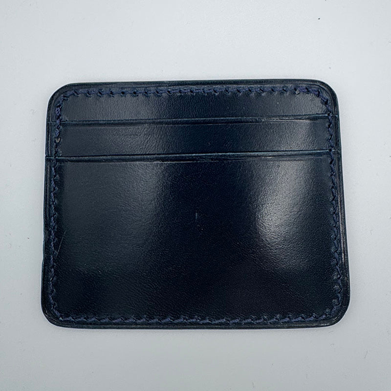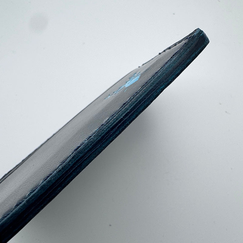Made from an Navy Gaucho Oil outer from the Conceria La Bretagna Tannery and lined in Electric Blue Maya. Saddle stitched with Amy Roke Red thread. The edges have been burnished and polished to a high sheen with tokonole and columbus wax.